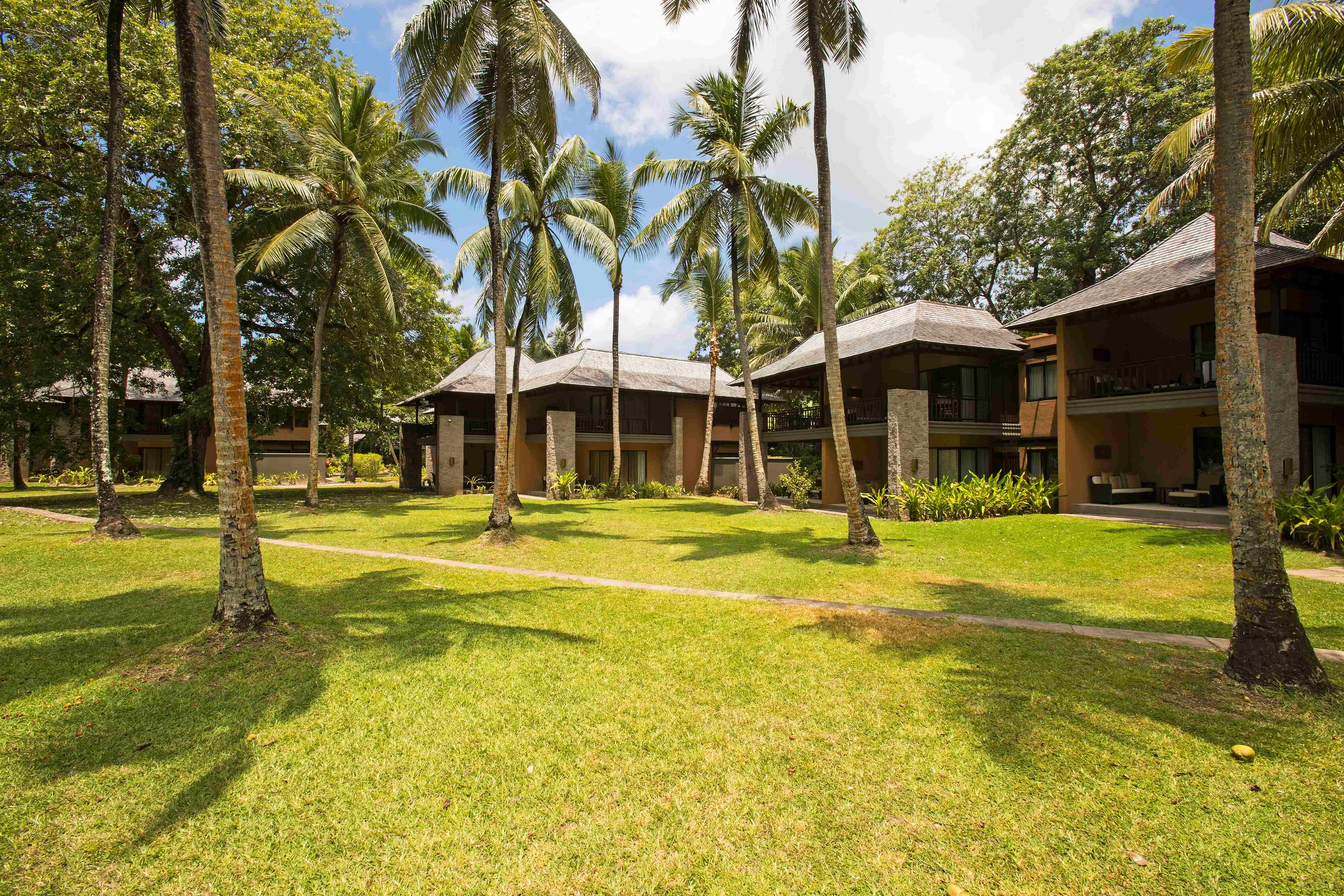 224 Suites en villas, élégantes et confortables avec espace salon. Toutes disséminées au cœur d'un paradis tropical. Junior Suites (62m2), côté plage sud, réparties en couronne avec piscine. Senior Suites (80m2), face au lagon et au parc marin, côté plage nord. 47 villas (douche extérieure), mini cave à vin et bicyclette. Family Villa 2 chambres (205m2) ou 3 chambres (350m2), piscine privée et espace repas extérieur. Beach Villa, face à la plage Nord, 1 chambre (185m2) ou 2 chambres (370m2). Hillside Villa, vue sur Anse du Port Launay, 1 chambre (185m2) ou 2 chambres (220m2), piscine privée. Service majordome inclus en Presidential Villa 3 chambres (980m2), vue mer exceptionnelle.