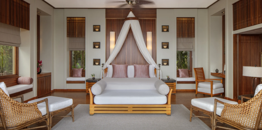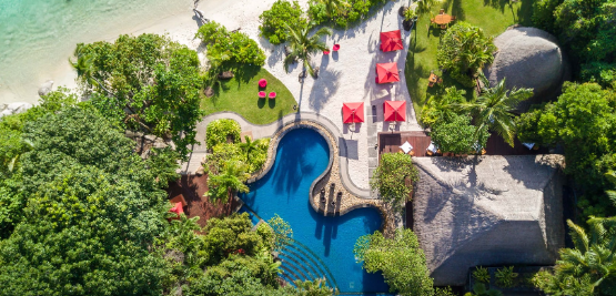 L'Anantara Maia Seychelles Villas est un sanctuaire intimiste et exclusif de très grand luxe (5 étoiles) situé sur une péninsule privée de l'île de Mahé, aux Seychelles. Enveloppé par 12 hectares de forêt tropicale luxuriante et bordé par la plage d'Anse Louis, ce complexe se distingue par son concept de villas privées uniquement (30 au total), chacune offrant une vue imprenable sur l'océan et une piscine à débordement privée. C'est une adresse mythique, axée sur le slogan "redécouvrez-vous", qui garantit une intimité absolue et une expérience hautement personnalisée grâce à son service de majordome dédié et son approche culinaire sur mesure ("Beyond All Inclusive").