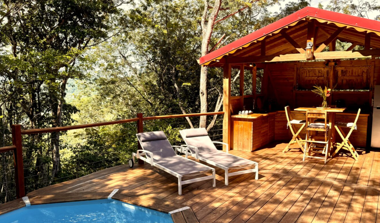 L'écolodge & Spa Au Jardin des Colibris est un havre de paix situé à Deshaies, en Basse-Terre, niché au cœur d'une nature tropicale luxuriante et classé refuge par la Ligue de Protection des Oiseaux (LPO), garantissant un environnement calme où l'on peut observer de nombreuses espèces d'oiseaux, dont les colibris. L'établissement propose des hébergements de charme allant des cases créoles aux bungalows et cabanes insolites comme le "Nid des Colibris" ou le "Jungle Lodge" avec piscine privative. Il se distingue par son engagement écologique, son offre de bien-être (spa, massages, yoga) et sa proximité avec le bourg de Deshaies et le Jardin Botanique.