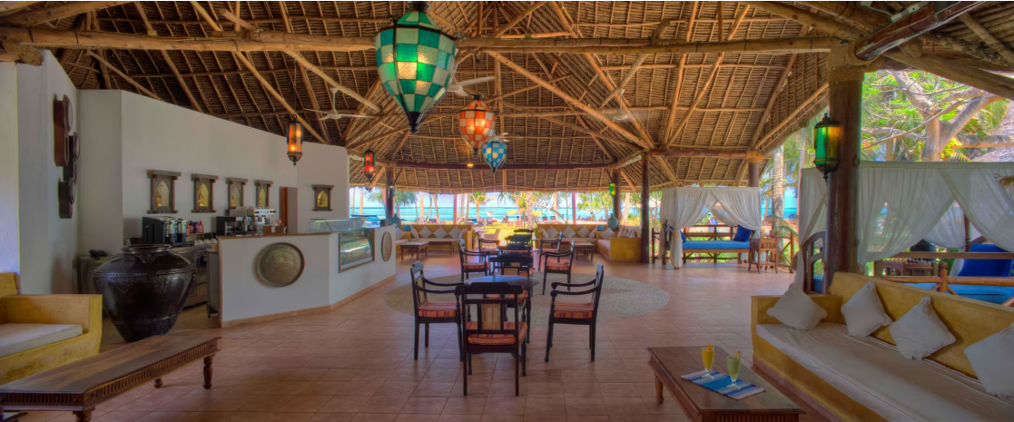 Le Makuti Restaurant propose buffets pour petit-déjeuner, déjeuner et diner avec vue sur piscine et ocean. Code vestimentaire élégant. Le Bahari Grill sert fruits de mer à la carte. Palms Pool Bar offre cocktails au bord de la piscine. Blue Marlin Beach Restaurant propose des spécialités grillées. Blu Deli Terrace Café pour café, patisseries, sandwiches et glaces.