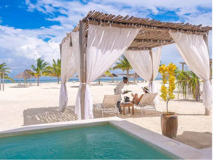 Les Villas de luxe pilotis sont situées au-dessus de l'eau sur le ponton du Konokono Beach Resort.  Dans un mode à part des structures en acier et en béton d'une ville moderne, ces villas d'eau exclusives ont été conçues avec style et confort modernes, tout en conservant une sensation authentique et rustique de l'Afrique de l'Est - manifeste avec les toits de chaume Makuti mélangés avec du bois de teck, de l'acajou et du bois de mangrove utilisés dans leur construction.