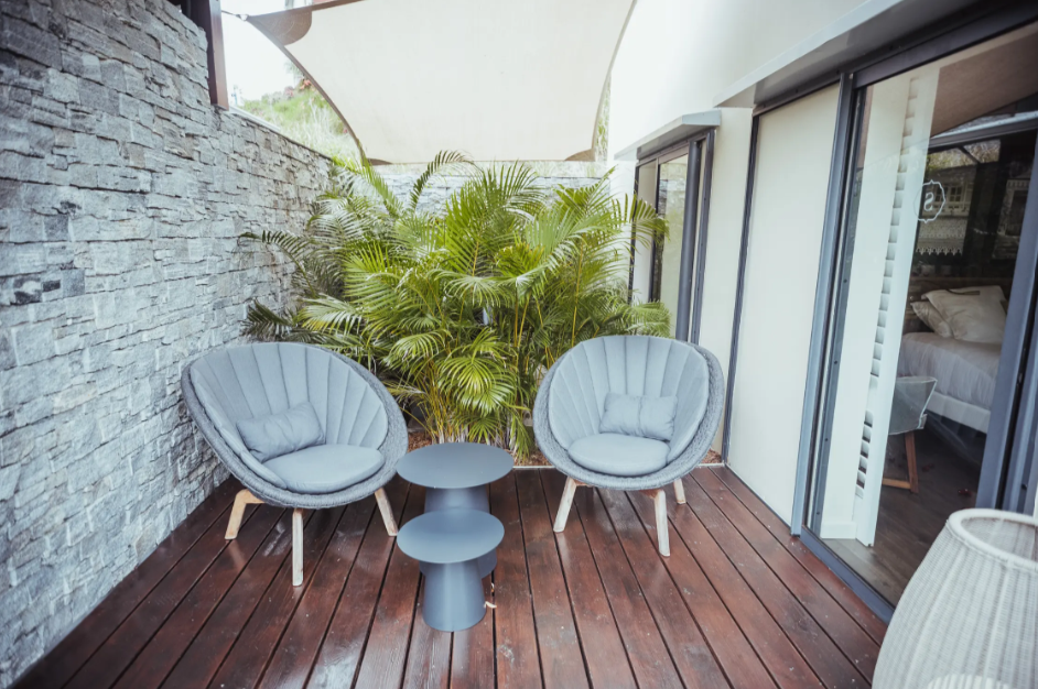 10 chambres Deluxe - 6 communicantes (32m2 - twin) rez-de-chaussée - salle de bain avec douche & baignoire - vue jardin et Piton d'Anchain.