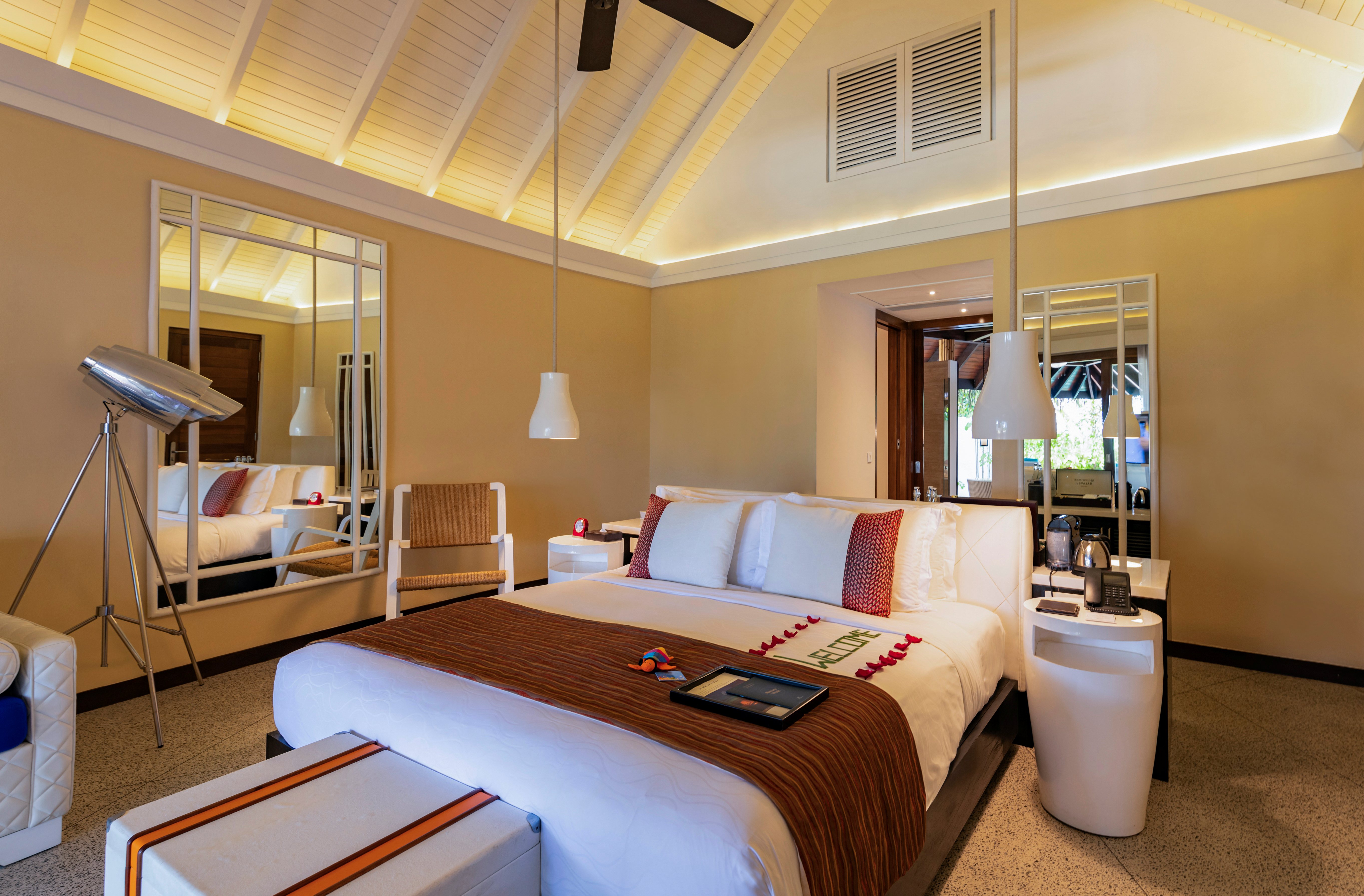 Toutes les villas sont climatisées, disposent de leur propre piscine et sont situées de plein-pied sur la plage ou construites sur pilotis. Elles sont confortablement meublées de bois et de marbre. Chaque villa possède aussi une terrasse ou balcon meublé et une salle de bain avec douche séparée (intérieure ou extérieure), baignoire et toilettes.