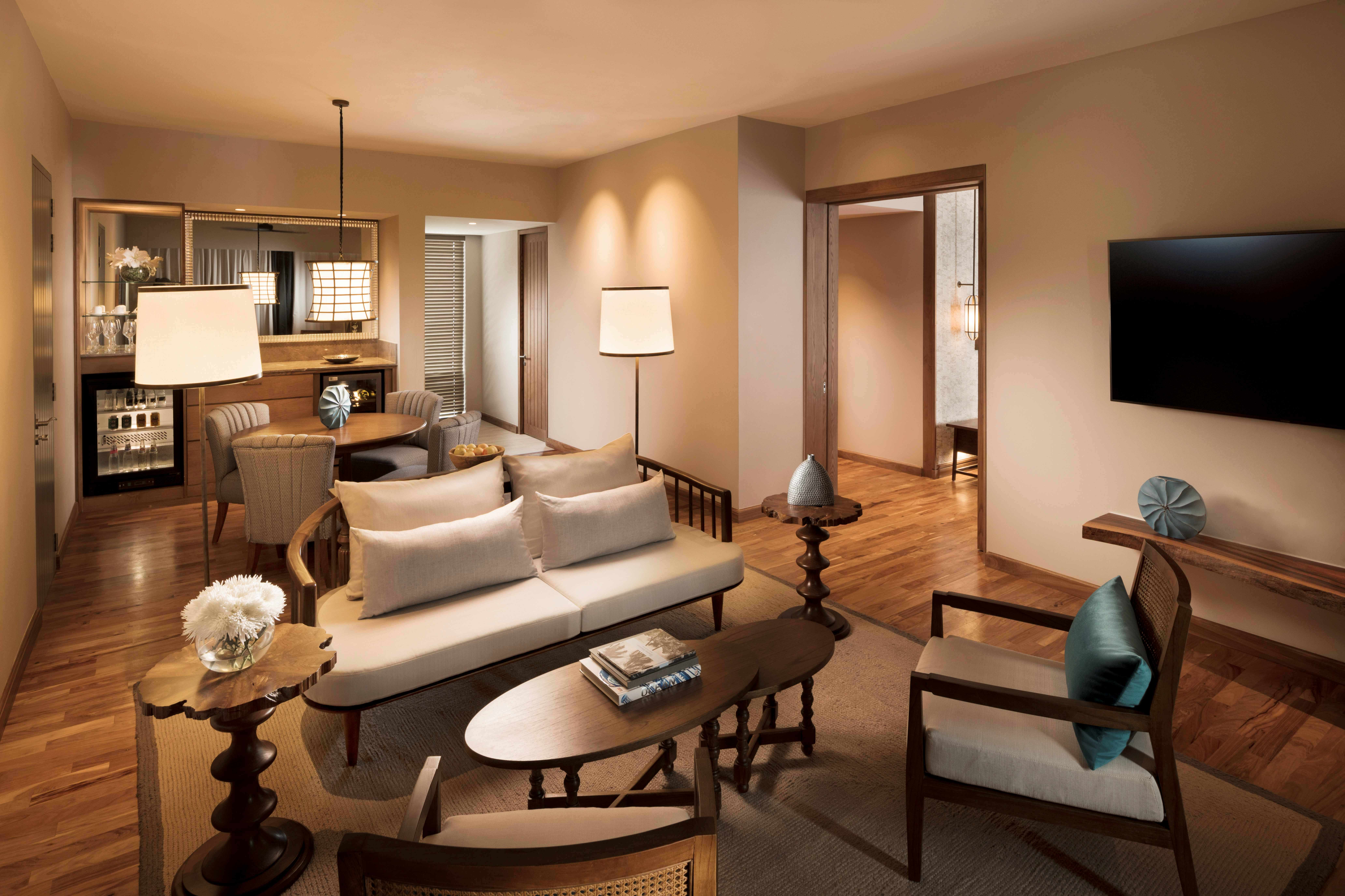 Toutes les chambres, vastes et éclairées naturellement, encouragent un style de vie insulaire à la fois décontracté et élégant. Elles peuvent être configurées en format King ou Twin, avec l'option de chambres adjacentes. Chaque chambre est équipée d'un balcon ou d'une terrasse aménagée, de la climatisation, d'une salle de bains avec baignoire et douche à effet pluie, sèche-cheveux, chaînes par satellite, Wi-Fi, une Smart TV dotée de Chrome cast, un téléphone avec boîte vocale, un coffre-fort personnel, un espace bureau, une zone salon, un minibar, du matériel pour le thé et le café, une machine à Espresso, des prises de 220 volts, des produits d'accueil ainsi que des peignoirs et pantoufles. De plus, nous offrons un service de couverture nocturne et un service en chambre disponible 24 heures sur 24.