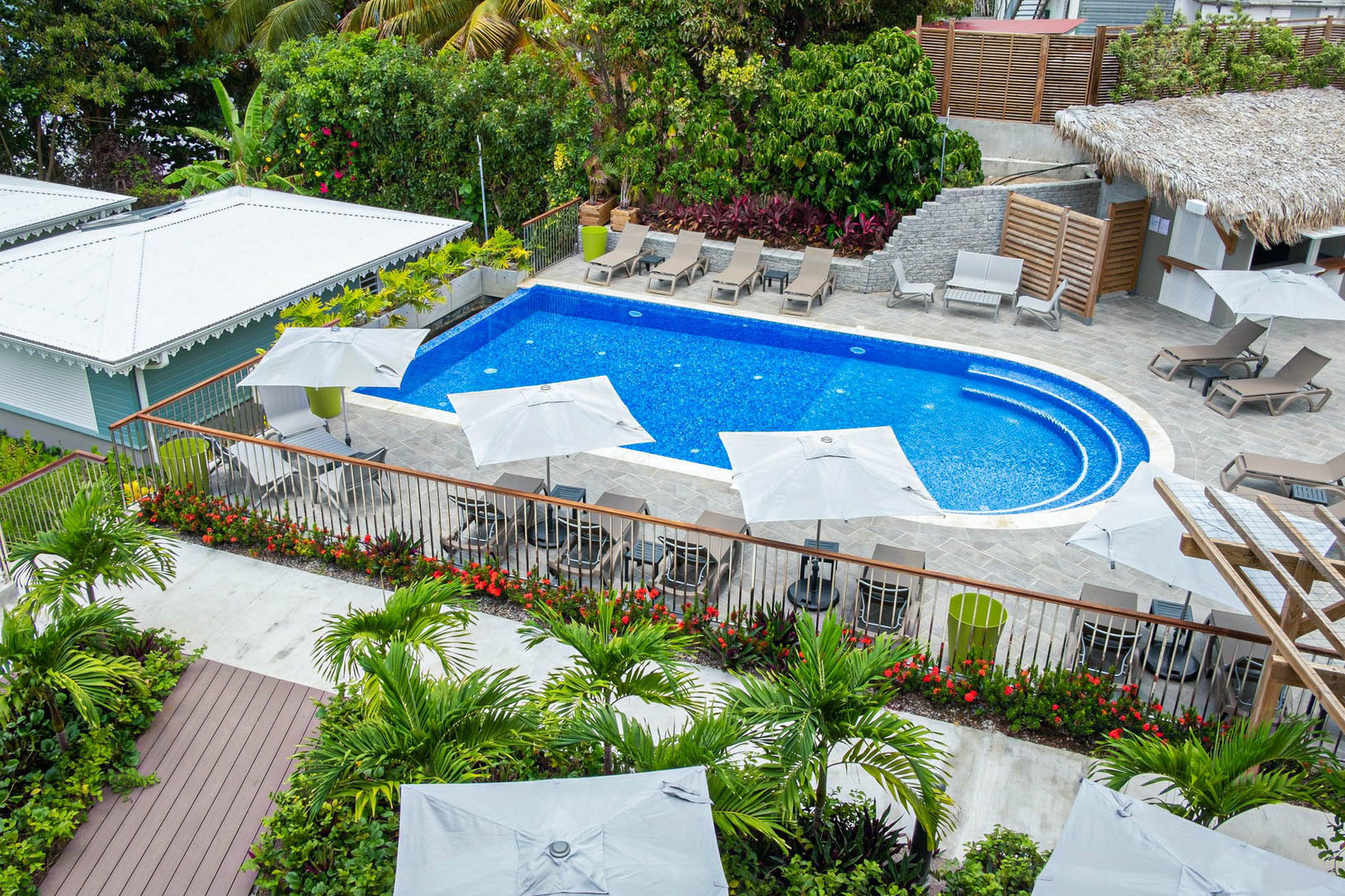 Le Diamant Les Bains est une résidence hôtelière 4 étoiles située sur la commune du Diamant en Martinique, offrant un cadre exceptionnel et historique face au célèbre Rocher du Diamant et en bordure de la plage, au cœur d'un jardin tropical luxuriant. L'établissement propose des studios et bungalows modernes et bien équipés, souvent avec kitchenette sur la terrasse, permettant de profiter pleinement de la vue sur la mer des Caraïbes ou le jardin.