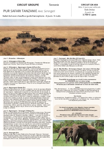 ses animaux. Le Parc National de Serengeti abrite en effet une faune Prix base 2 pers : + 899€ / pers - Prix base 4 pers : + 159 € / pers