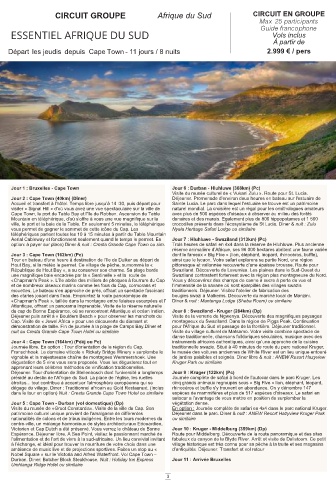 CIRCUIT GROUPE Afrique du Sud CIRCUIT EN GROUPE