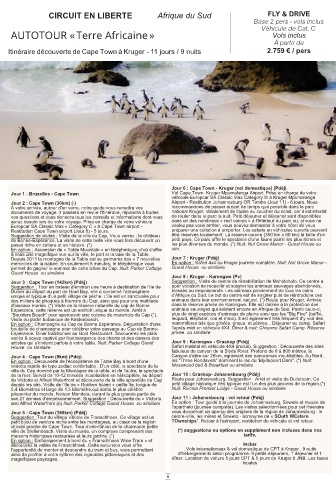 aurez besoin lors de votre voyage. Prise en charge de votre véhicule dans un des nombreux « rest camps » à l'intérieur du parc ou, si vous ne