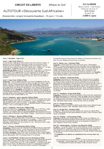 Jour 6 : Hermanus - Knysna (428km) (Pdéj) Jour 14 : Graskop - Johannesburg (Pdéj)