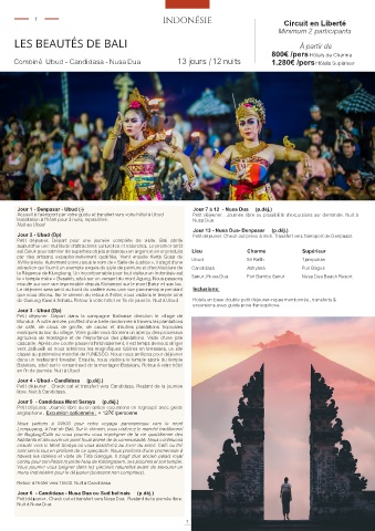Jour 1 - Denpasar - Ubud (-) Jour 7 à 12 - Nusa Dua (p.déj.)