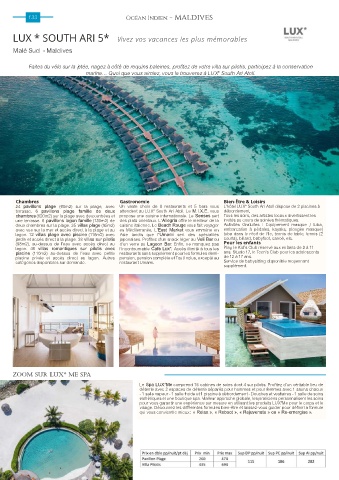 24 pavillons plage (60m2) sur la plage, avec Un vaste choix de 8 restaurants et 5 bars vous L'hôtel LUX* South Ari Atoll dispose de 2 piscines à