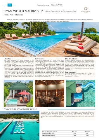 Le resort possède 470 villas divisées en 16 Avec ses 8 restaurants et 7 bars, Siyam World Plusieurs activités nautiques sont disponibles telles