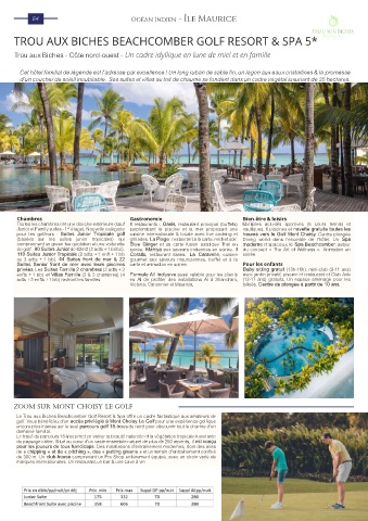 comprennent un green fee quotidien et une voiturette Blue Ginger et sa carte fusion asiatique Thaï en moderne et spacieux, le Spa Beachcomber, autour