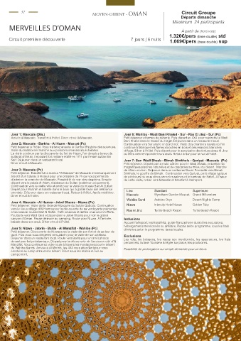 Jour 1: Mascate (Din.)                                 Jour 6: Wahiba - Wadi Bani Khaled - Sur - Ras El Jinz - Sur (Pc)