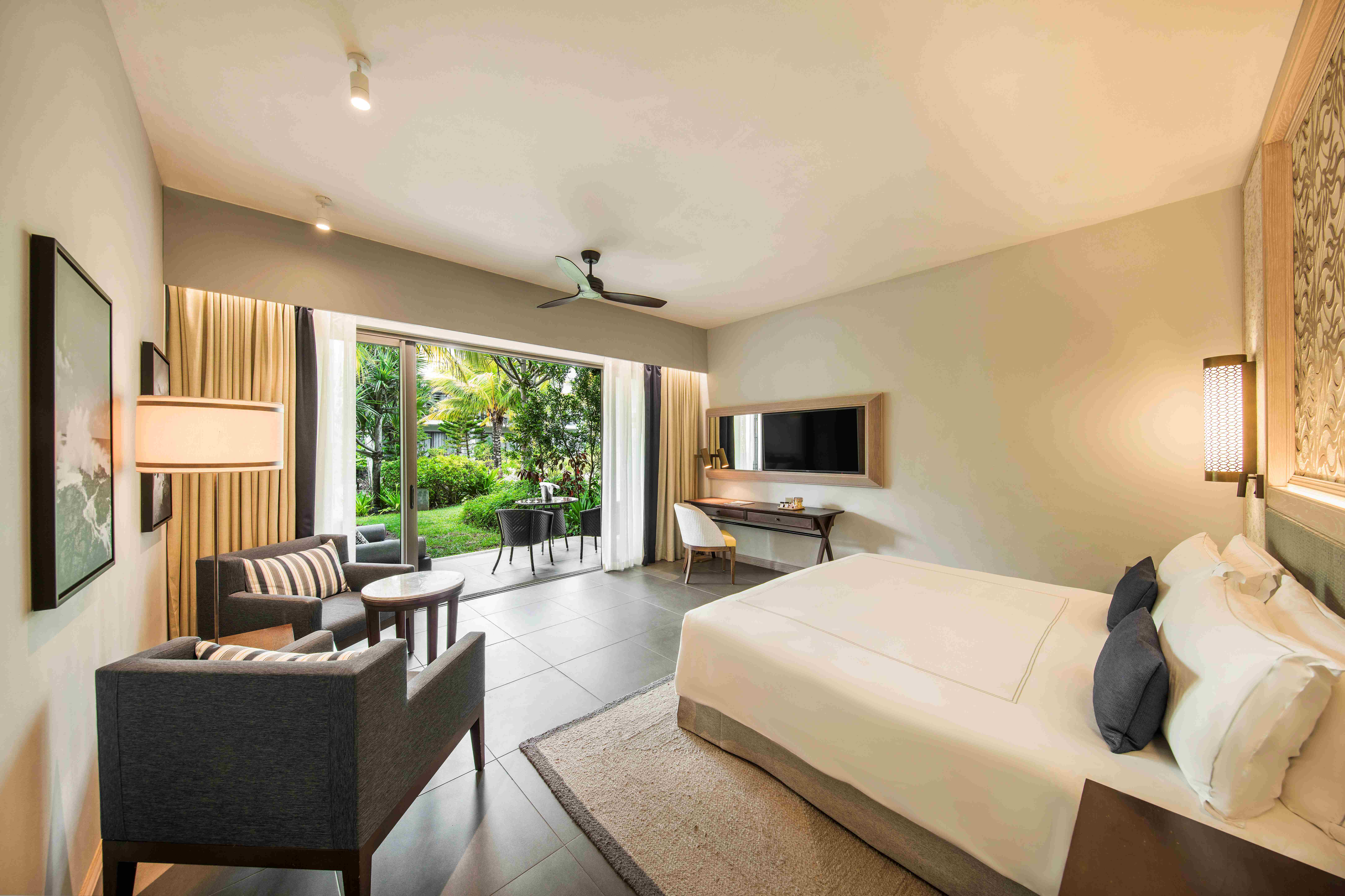 Toutes les chambres, vastes et éclairées naturellement, encouragent un style de vie insulaire à la fois décontracté et élégant. Elles peuvent être configurées en format King ou Twin, avec l'option de chambres adjacentes. Chaque chambre est équipée d'un balcon ou d'une terrasse aménagée, de la climatisation, d'une salle de bains avec baignoire et douche à effet pluie, sèche-cheveux, chaînes par satellite, Wi-Fi, une Smart TV dotée de Chrome cast, un téléphone avec boîte vocale, un coffre-fort personnel, un espace bureau, une zone salon, un minibar, du matériel pour le thé et le café, une machine à Espresso, des prises de 220 volts, des produits d'accueil ainsi que des peignoirs et pantoufles. De plus, nous offrons un service de couverture nocturne et un service en chambre disponible 24 heures sur 24.