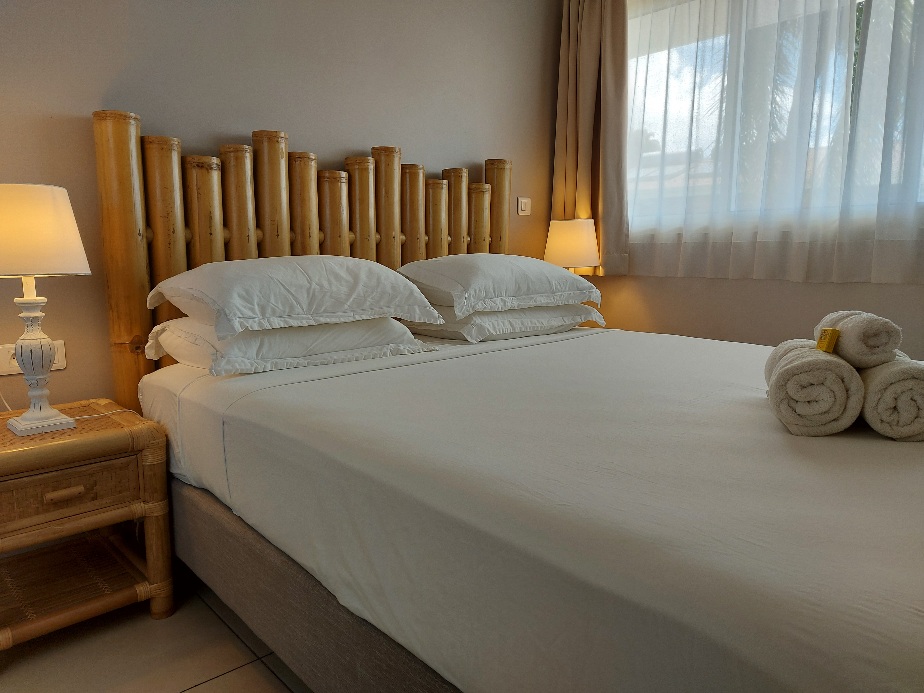 Il comprend un salon, une cuisine aménagée et une chambre séparée. Celle-ci dispose un lit double et deux lits simples. Il est possible d’ajouter un deuxième lit d'appoint supplémentaire pour un enfant. Il est climatisé, confortable, et meublé avec salle de bain privative.