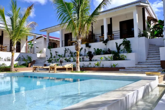 Nyumbani Residence, située à la périphérie de Jambiani à Zanzibar, offre douze appartements indépendants alliant qualité et confort pour les couples, les familles et les groupes d'amis. Son nom, signifiant "maison" en swahili, reflète l'ambiance chaleureuse que la résidence souhaite offrir à ses hôtes. Chaque appartement est équipé d'une cuisine complète, permettant aux visiteurs de préparer leurs repas en toute autonomie, tout en ayant la possibilité de découvrir les nombreux restaurants à proximité. La résidence est idéalement située à seulement trois minutes à pied de l'une des plus belles plages de Zanzibar, invitant à la détente ou à l'exploration. Nichée au sommet d'une petite colline, elle bénéficie souvent d'une agréable brise marine, offrant une fraîcheur bienvenue sous le climat tropical.