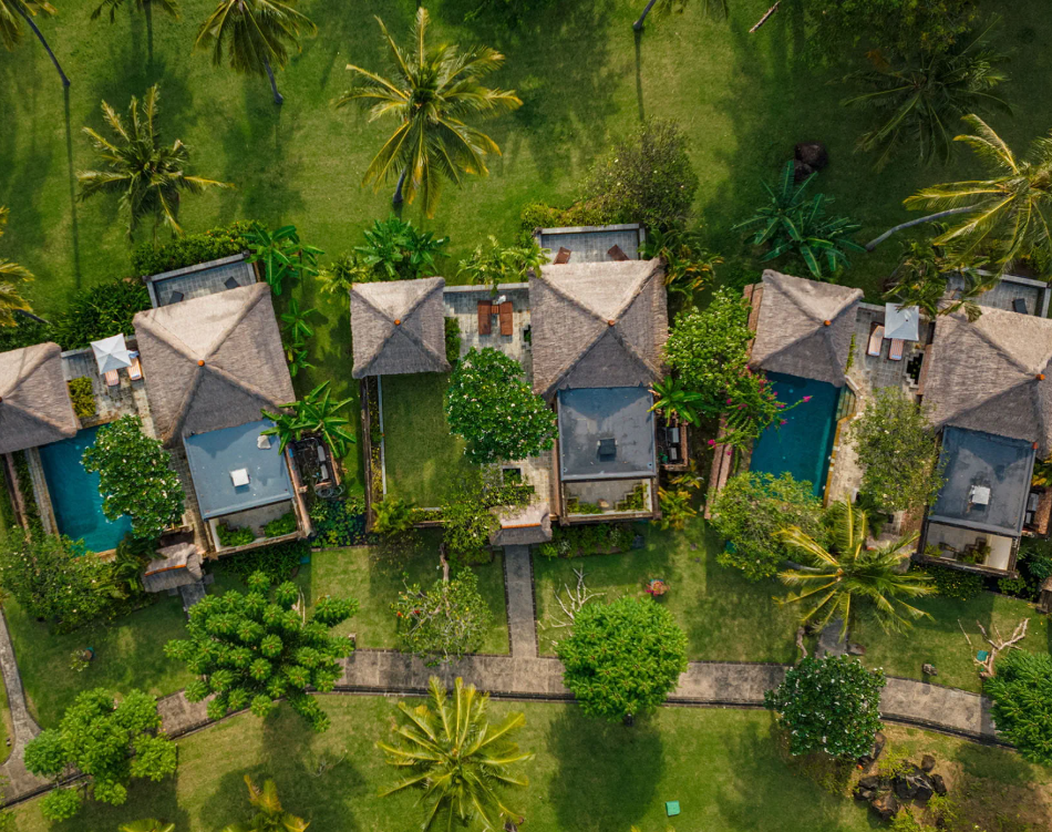 Les 50 pavillons et villas se répartissent en 8 catégories.  Les Luxury Pavilion Garden View (75m2) et les Luxury Pavilion Ocean View (75m2) se composent d'une grande chambre avec lit king size, d'une salle de bain avec baignoire et d'une terrasse privée.  Les Luxury Villa Garden View (90m2) et les Luxury Villa Ocean View (90m2), plus spacieuses, offrent les memes facilités que les pavillons.  Les Luxury Villa Garden View with Pool et les Luxury Villa Ocean view with Pool bénéficient d'une piscine privée.  Autres catégories disponibles sur demande.