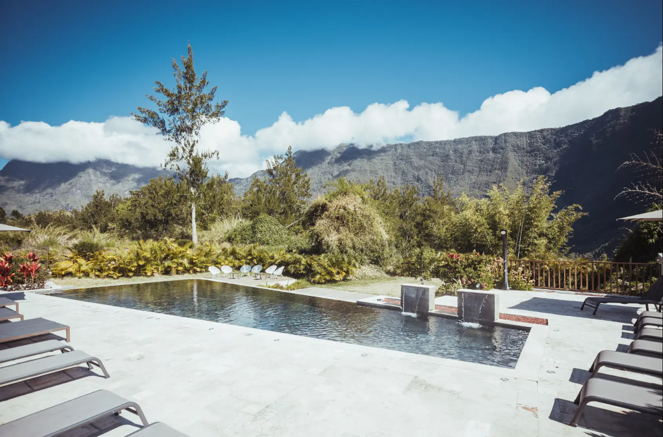 10 chambres Deluxe - 6 communicantes (32m2 - twin) rez-de-chaussée - salle de bain avec douche & baignoire - vue jardin et Piton d'Anchain.