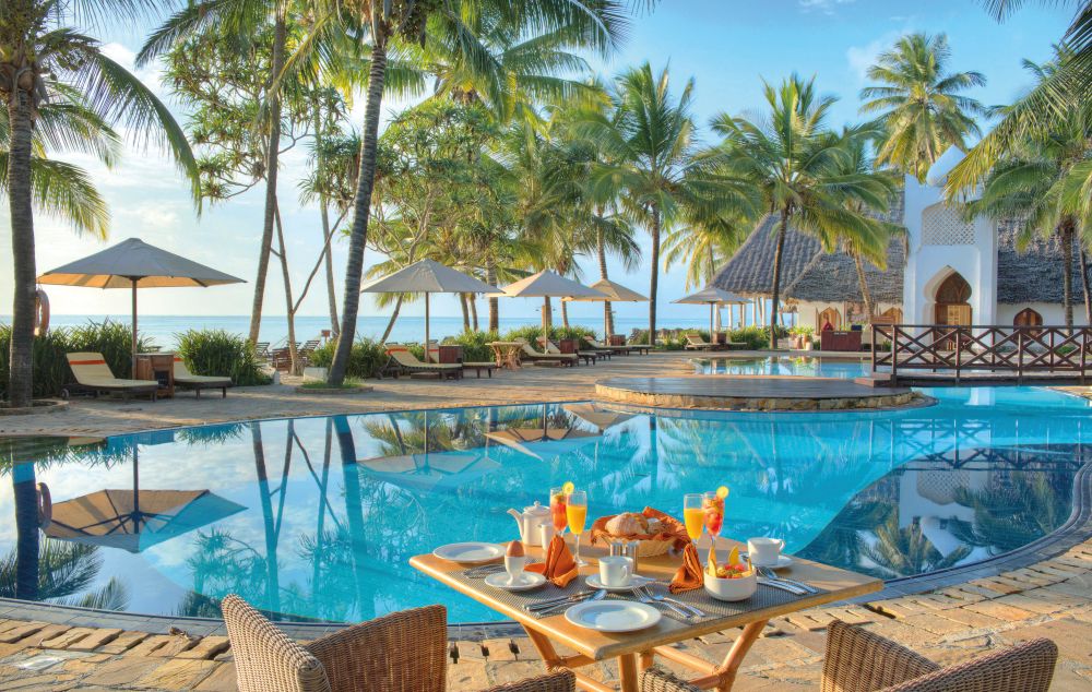 Le Sultan Sands Island Resort & Spa, situé sur la plage de Kiwengwa à Zanzibar, propose plusieurs types de chambres décorées dans un style traditionnel africain avec des toits de chaume, offrant confort et modernité.