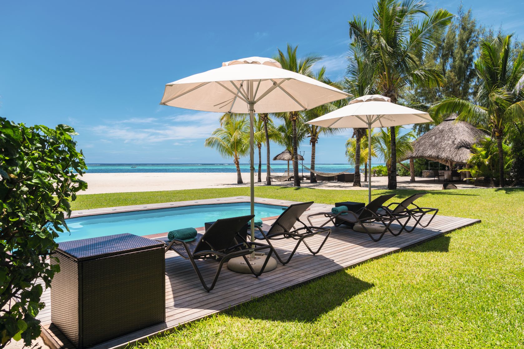 Les villas du Dinarobin, situées à proximité de la plage sur la splendide péninsule du Morne, bénéficient d'une position privilégiée pour des vacances idylliques à l'île Maurice.  Chaque villa s'ouvre directement sur la plage grâce à une terrasse bien agencée, offrant un coin salon et un espace repas propices à la détente.  Au réveil, une promenade le long de la plage réveille les sens avant de plonger dans la piscine privée.