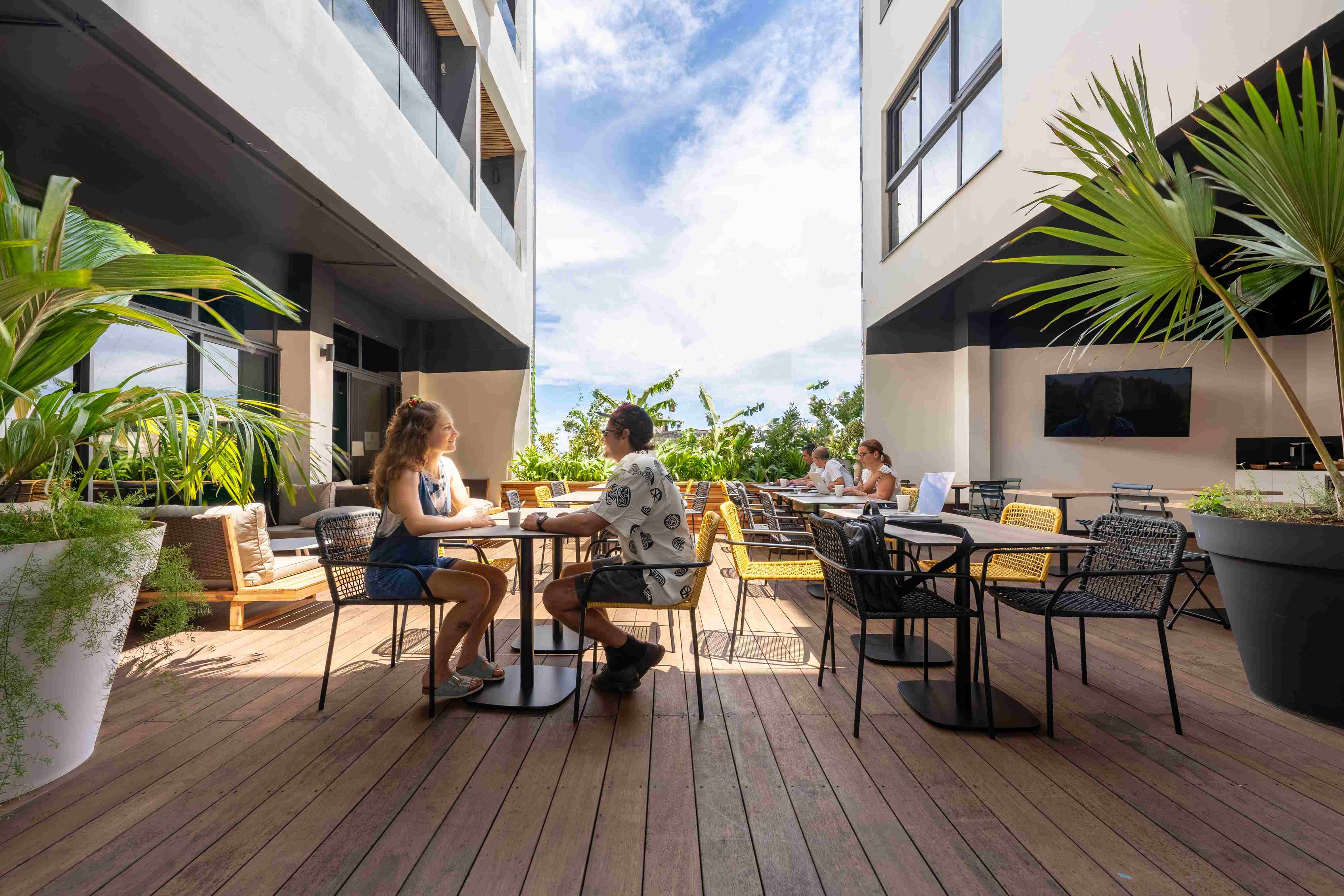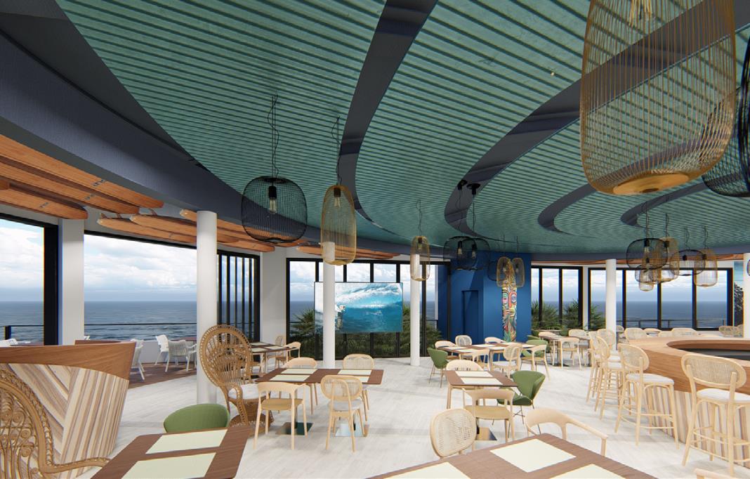 Le restaurant The Surfhouse, situé à l’étage 7 avant le rooftop, dévoile une vue imprenable sur le port de Pape’ete et son ile sœur, Moorea. Le restaurant vous propose le déjeuner et le diner dans une ambiance décontractée. La carte est métissée proposant une cuisine polynésienne, française et internationale. The Surfhouse peut accueillir jusqu’à 136 convives. Au sommet du Kon Tiki dans une ambiance lounge et exotique, Le Reeftop vous propose un lieu insolite et branché. Un endroit stratégique a l’heure du coucher de soleil pour profiter de délicieux cocktails et de plateaux à partager