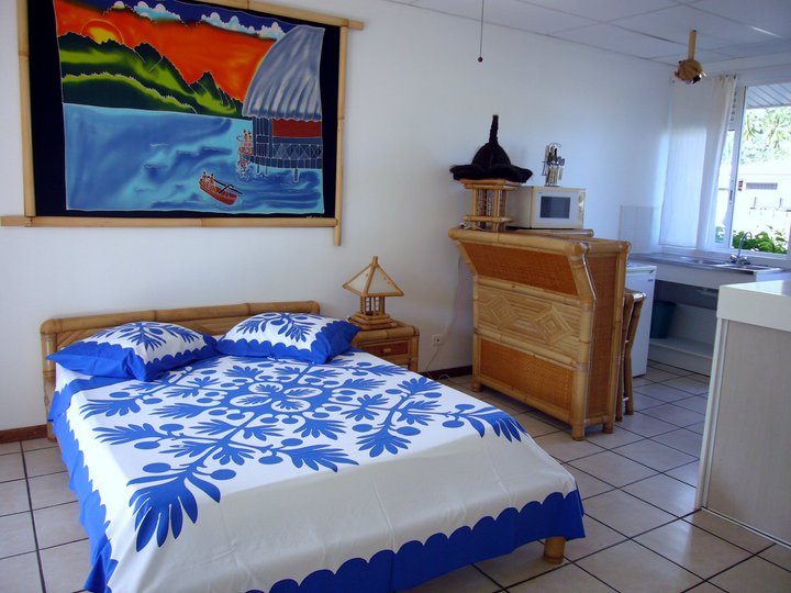 Les chambres et studios sont climatisés, spacieux, confortables et décorés aux couleurs polynésiennes. Vous aurez le choix de prendre vos repas à la table d'hôtes près de la piscine, cuisiner dans votre studio ou goûter une des nombreuses "roulottes" - petits restaurants ambulants typiques situés aux alentours de la pension.