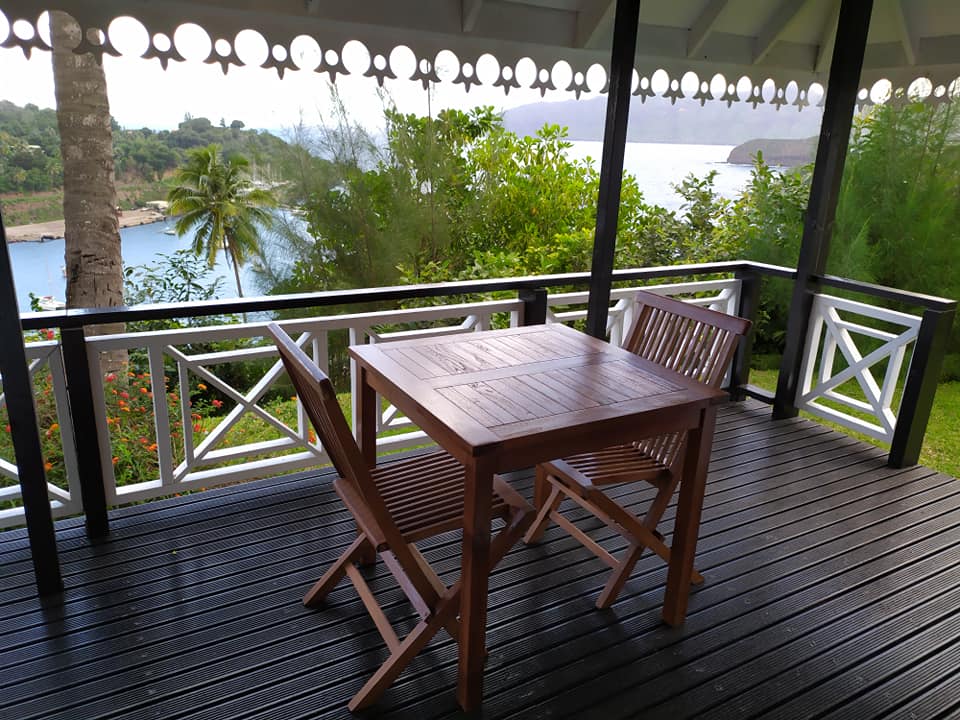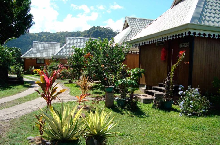 Ces bungalows sont conçus dans un style simple mais confortable et sont souvent situés dans le jardin fleuri de la pension. Ils offrent une vue sur la baie de Tahauku, le port et la vallée environnante, procurant une atmosphère paisible. On y trouve également une salle de bain privée avec douche et eau chaude, un ventilateur (brasseur d'air), un réfrigérateur, un diffuseur anti-moustique et une terrasse privative pour profiter de la vue